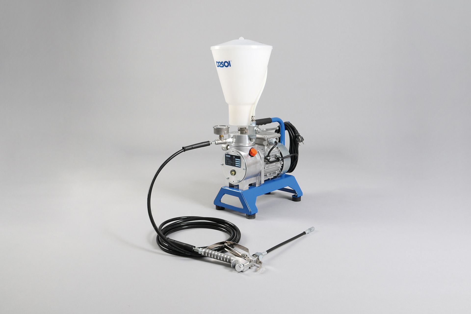 Membrane pumps are available with mechanical, electric, hydraulic or pneumatic drive. The alternating deflection of the membrane increases and decreases the volume of the pump chamber so that the injection material is drawn in and forced out (direction controlled by check valves).