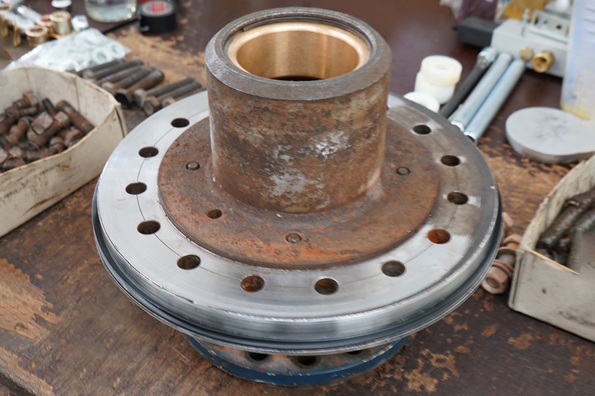 - Neue Rotgussbuchse angefertigt und eingesetzt