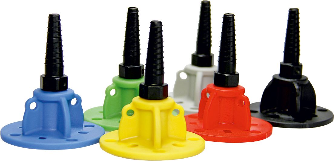 Within the injection hose system, the nail packers provide access to the hose. They can be nailed directly to the formwork or mounted to the reinforcement using holders. Then the injection hose ends are mounted to the nail packers. After the formwork has been removed, the injection hose can be injected at any time (take out protection plugs and screw in HP round head nipples).